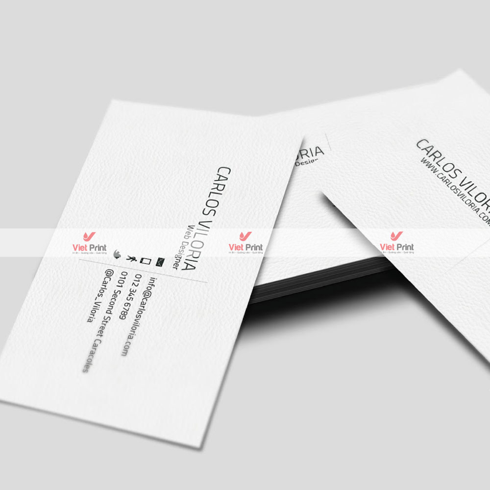 – In name card có chữ nổi, ép nhũ màu kim loại trên bề mặt. Hoặc card visit được in trên giấy mỹ thuật cao cấp hay theo dạng in thẻ nhựa PVC